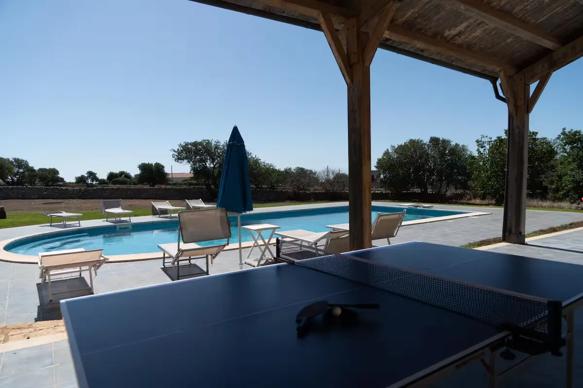 Ogni ambiente è fornito di tutti i comfort necessari. L’area esterna offre una spaziosa veranda coperta, completa di tavoli, sedie, ombrelloni, lettini, un tavolo da ping-pong, un barbecue e un ampio parcheggio.